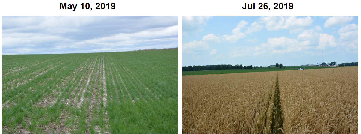 Wheat was harvested in summer 2019 and the cover crops were left to grow for the remainder of the season and observed several times.
