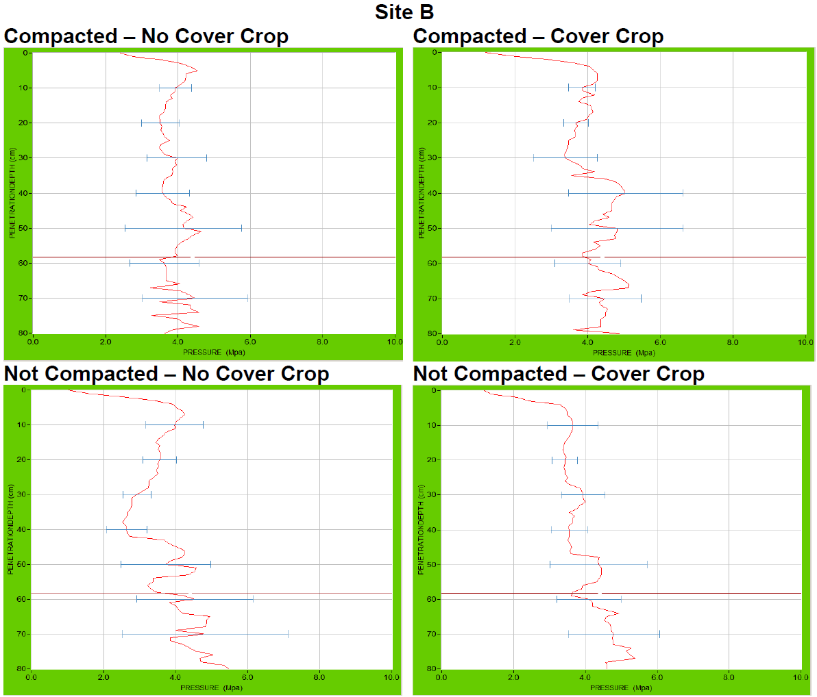 This project should be repeated to gather knowledge on the impact of soil compaction by tillage system and to understand the ability of cover crops to help alleviate soil compaction once it has occurred.