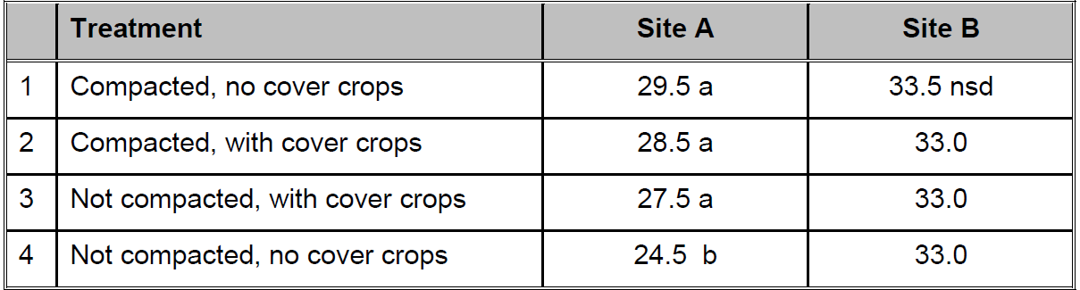 Table 3. Crop Yields by compaction and cover crop treatments for 2019 and 2020.