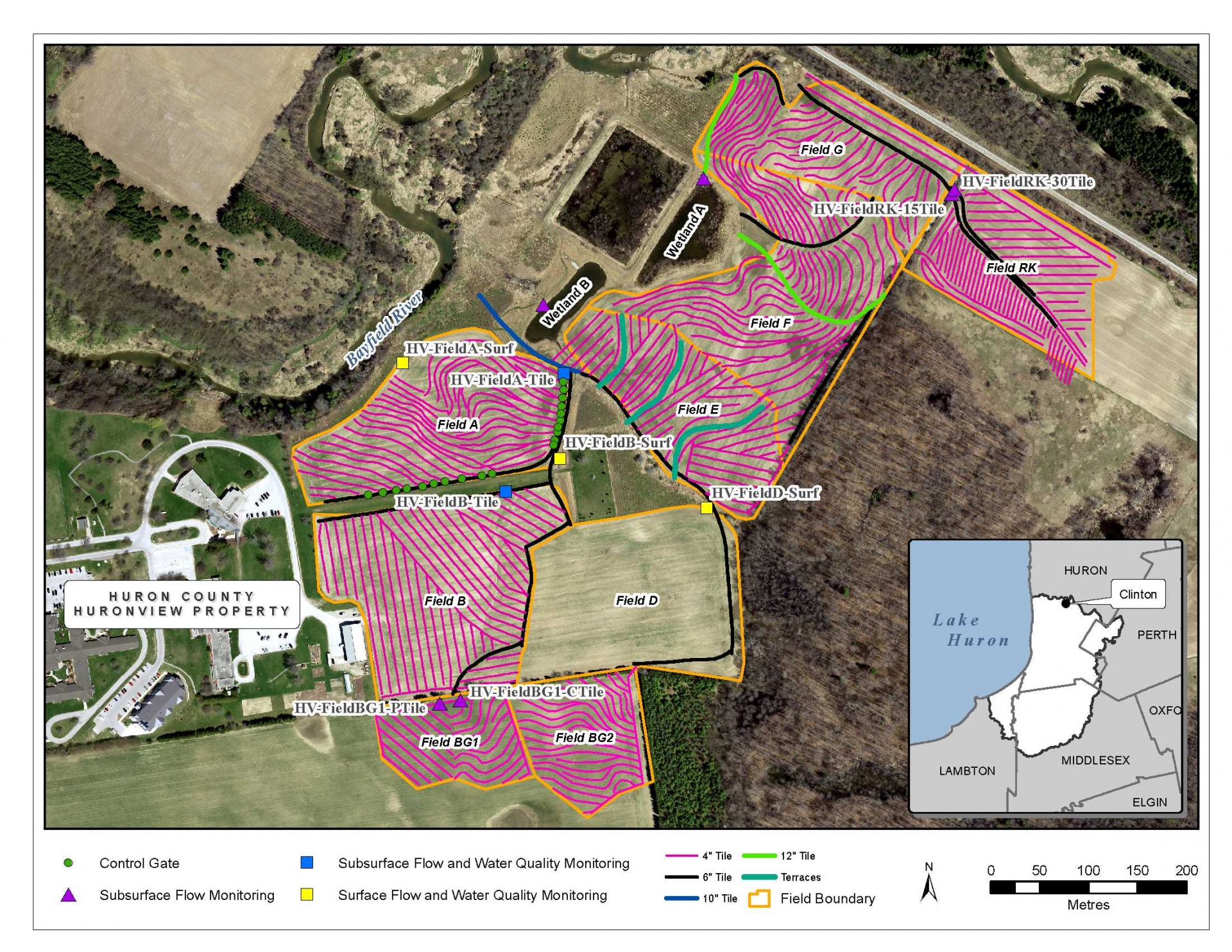 At the Huronview Demonstration Farm, Huron County, the Huron County Soil and Crop Improvement Association and the Ausable Bayfield Conservation Authority have collaborated with the drainage industry to evaluate innovations in tile drainage. An innovative drainage project with contour drainage, control gates, wetlands, and terraces were installed starting in March 2019, culminating in a drainage demonstration day with over 300 people on June 19, 2019. Crop yields, soil health and water quantity and quality monitoring at the site follows a before, after, control, impact design. Ongoing knowledge technology transfer includes: A website, signs, trade magazine articles, conferences, peer-to-peer events, and more.