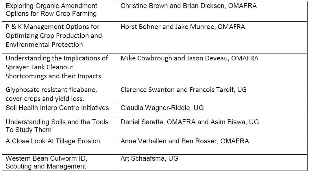 The FarmSmart Expo is a one day event, with the first day inviting farmers and agribusiness to the Elora Research Station of the University of Guelph. The participants are organized into small groups who rotate through a number of sessions that challenge them in problem solving current and obscure agronomic events that have been experienced in the field. The sessions also highlight new technologies and techniques.