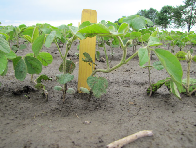 Image 2: Rolling at the 3rd trifoliate resulted in excessive plant stand losses.