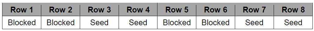 - Twin row wheat (two paired 7.5” wheat rows on 30” centres)