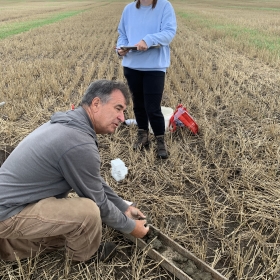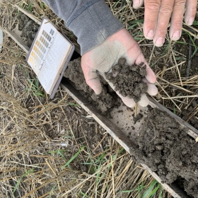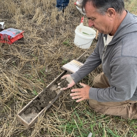 The best management practice (BMP) shown at this ONFARM site is a comparison of using a cover crop and including it with an organic amendment (biosolid pellets) at different rates. The field site is an undulating landscape on a clay loam soil with organic depressional areas. The soil health goals are to increase soil resilience and biological processes to reduce risk and improve profitability.