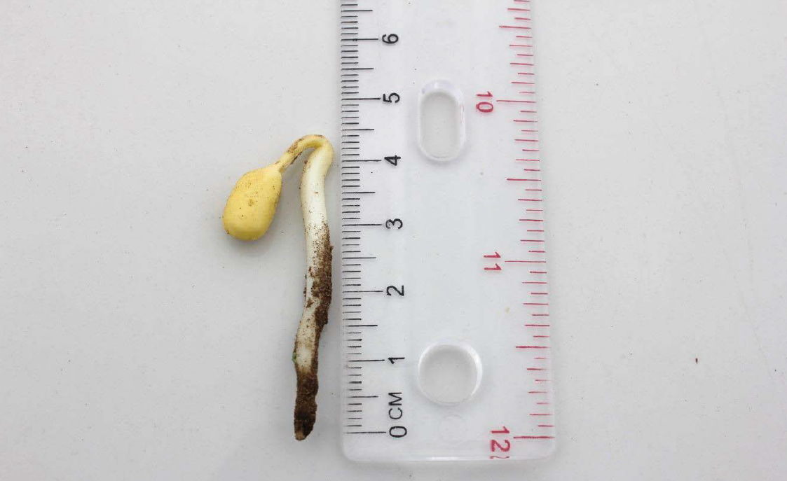 Figure 2. When herbicides were applied at 6 days after planting, the soybean seed had a 15 mm hypocotyl