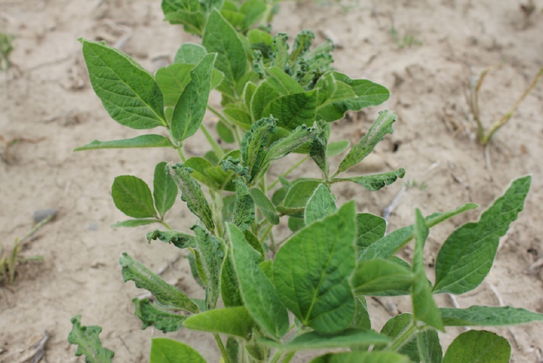 Figure 5. 2,4-D injury on soybean trifoliate leaves when applied 9 days after planting.